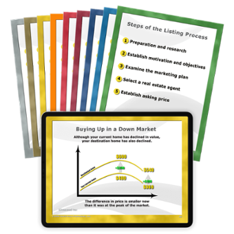 Over the years, David has encountered every possible pricing objection–and has designed a dialog and illustration for each one. Now you can respond to any pricing objection sellers raise and show them the importance of pricing properly. (20 of these PDF charts are featured in our consumer DVD “Pricing Your Home to Sell”). The charts are numbered so you can select and print by number. You’ll never again be caught without a response to a seller’s pricing objection.